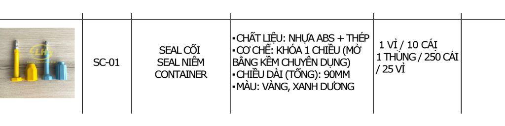 CATALOG SEAL NIÊM PHONG (KHÓA NIÊM PHONG) LONG HẢI PLASTIC
